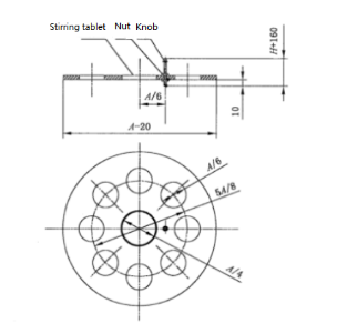 Note 1: A is the inner diameter of the pan, H is the depth of pan Note 2: Part material: stir tray is made of aluminum plate with thickness of 1mm, knob is made of φ4 stainless steel rod | ||||||||||